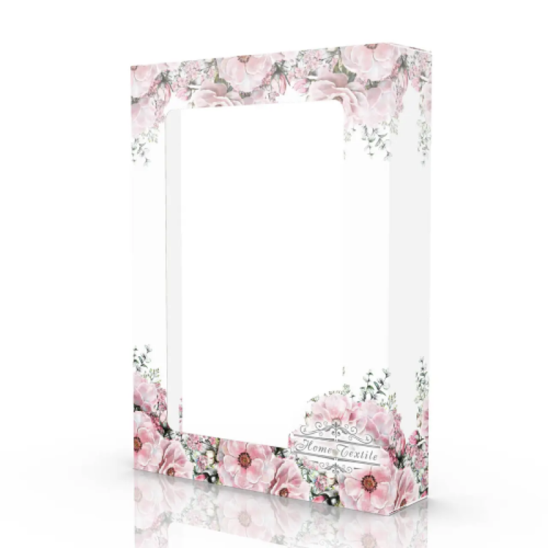 Коробка з картону 375*275*70мм., що складається із дна та верхньої кришки з віконцем. Використовується для упаковки двох рушників: лицьового та банного.