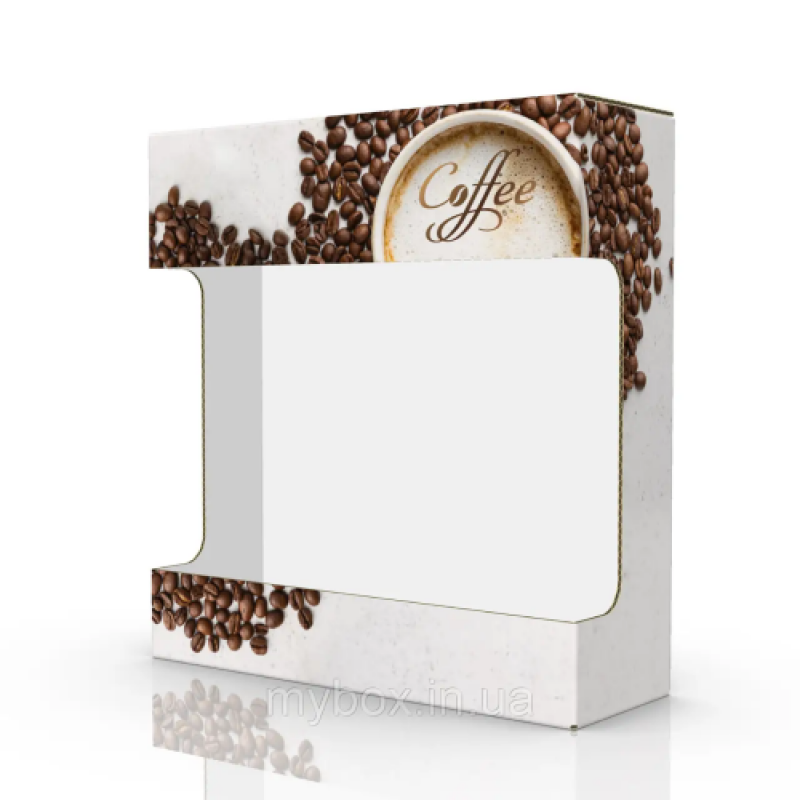 Подарункова коробка з віконцем виготовлена з гофрованого матеріалу покрита захисною плівкою.